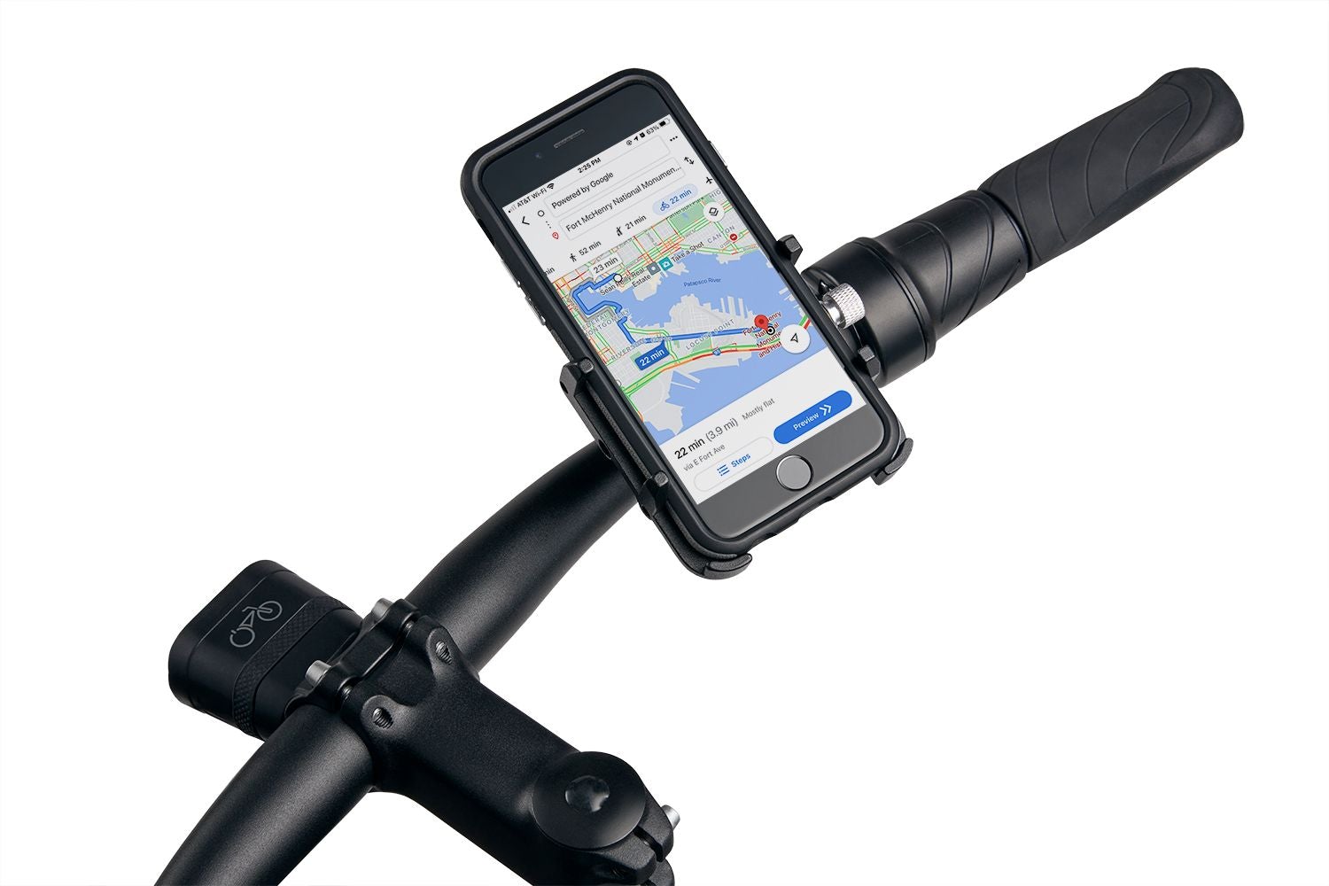 The GUB PRO-3 Phone Mount securely attaches to the handlebars of the ebike and provides a secure location to mount your phone, allowing you hands-free use.