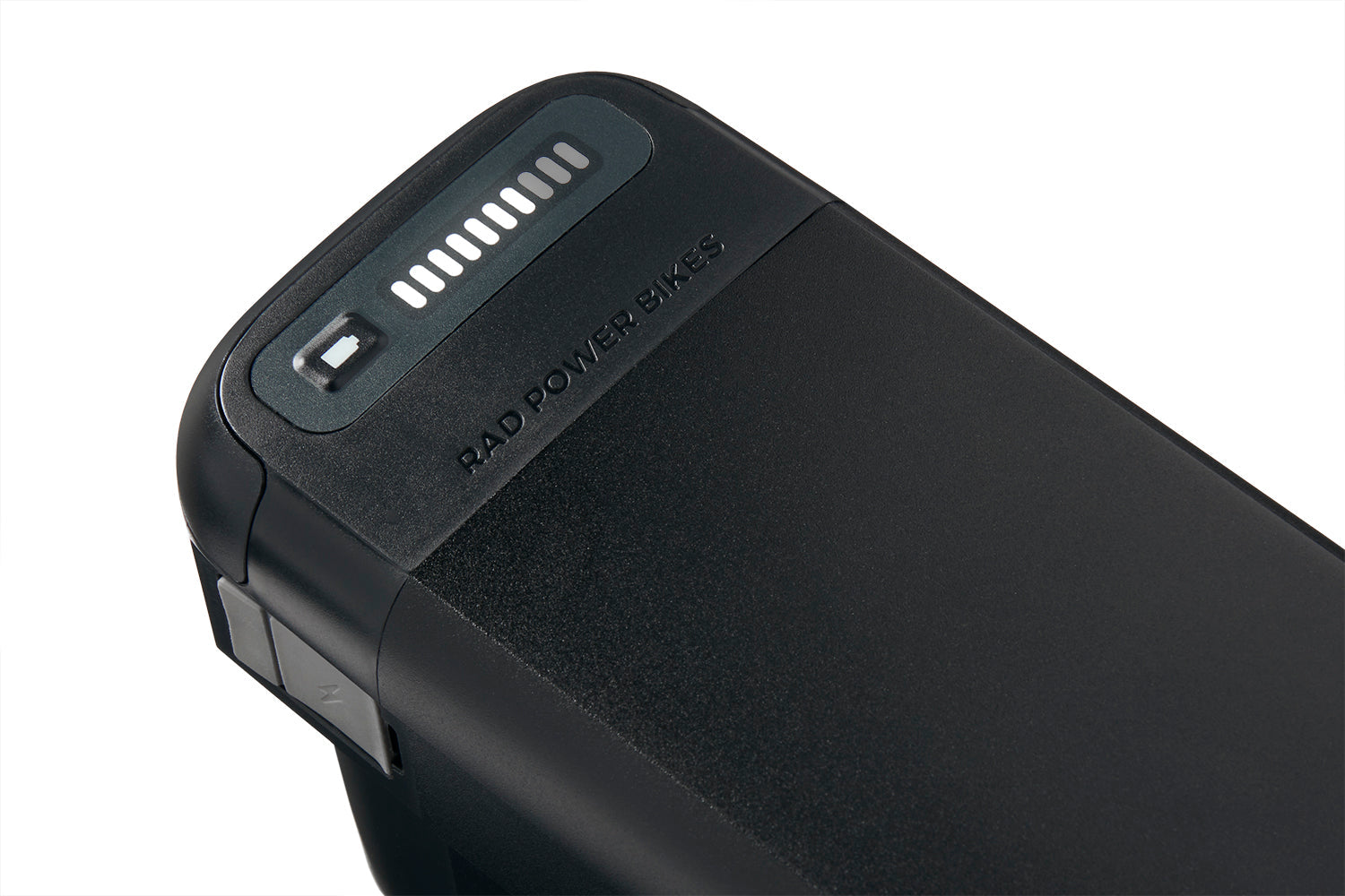 The semi-integrated battery pack is compatible with the RadRhino 6 Plus and RadCity 5 Plus. It features a 10 LED charge indicator, a practical grip for greater portability, and is rated for 800 charge cycles.